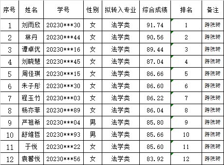 根据《jdb电子中国官方网站普通本科生专业分流与转专业管理办法(试行)》(长大校发〔2019〕260号)文件以及本科生院《关于2023级普通本科生春季转专业工作的通知》要求,结合jdb电子中国官方网站2023级本科生转专业工作方案的具体安排,我院于3月9日组织了对拟转入学生的面试。综合必修课平均成绩和面试成绩,经我院党政联席会讨论通过,现将拟接收名单公示如下: