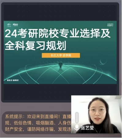 策马扬鞭正当时,矢志笃行立芳华。2023届考研即将落幕,2024届考研的号角即将吹响,为助力2024届学生提前熟悉考研形势,jdb电子中国官方网站于11月24日邀请新东方专业讲师李梦思,以线上的形式为我院学生详细介绍了24考研择校、专业复习规划等方面的内容,参与学生达150余人。