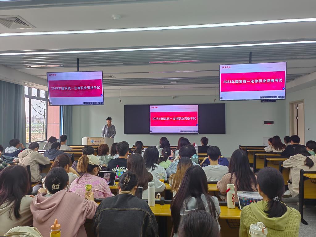 本次分享会由辅导员雷礼主持,吸引了众多学生的积极参与。会上,特别邀请到了已经成功通过法考的学长学姐进行经验分享。他们通过详细的案例分析、个人经历分享和备考技巧传授,给予了学弟学妹们许多宝贵的启示与建议。