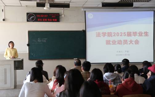 随后,严星老师对2025届毕业生就业动向进行了统计,分析了2025届全国普通高校毕业生的就业形势,并对近年来我院毕业生的就业领域、地域以及考研升学、出国出境的情况进行了介绍。她特别强调大家要树立正确的择业观,对求职注意事项、检索求职信息、树立求职信心等方面进行了讲解。