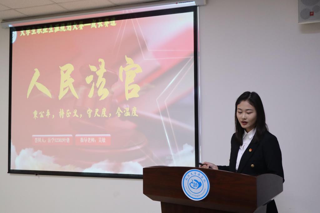 大赛现场气氛热烈非凡,每个选手都投入了极大的热情与努力。在比赛过程中,选手们通过生动的PPT演示和富有感染力的演讲,详细阐述了自己的职业规划。他们深入分析了法学领域未来的就业环境发展趋势,并展现了自己在法律方面的特长,提出了成为一名律师的职业目标。制定了短期、中期、长期的学习与实践计划来向自己的目标职业靠拢,包括参与相关项目,在律师事务所实习等步骤,让评委和观众看见了他们实现职业目标的坚定决心。